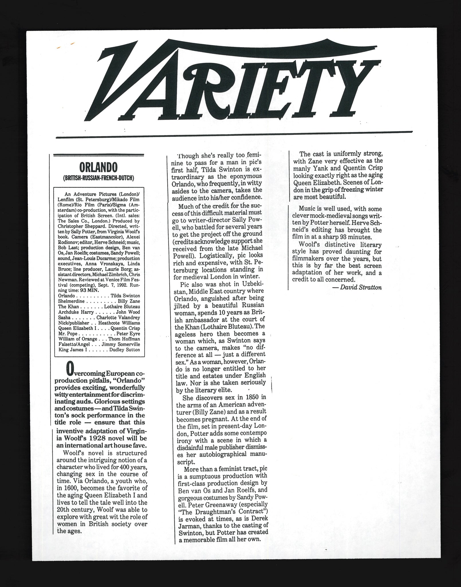 Orlando, 1992 Press Kit